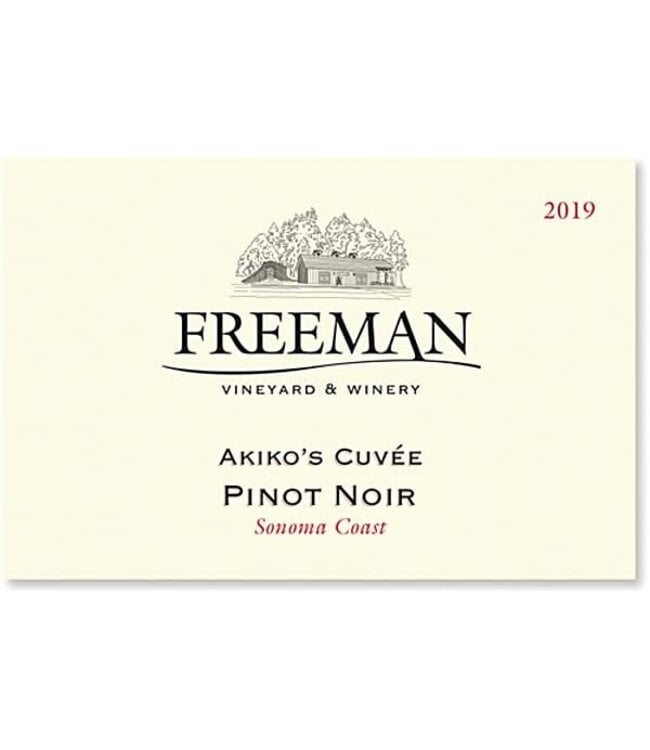 Each vintage since their inaugural 2002, Freeman has released an Akiko’s Cuvée. Akiko Freeman and her winemaking staff taste each barrel of Pinot in the winery from that vintage and choose their favorites. Then, each person’s top barrels are put together in a blend (or cuvée), and we subsequently taste each of the samples blind, so that no one knows whose favorite barrels are in which blend. We call this Akiko’s Cuvée since her blend almost always wins this blind tasting. The four vineyards from where Freeman sourced Pinot Noir in 2019 are represented in the Akiko’s Cuvée - Gloria, KR, Yu-ki and Pratt.