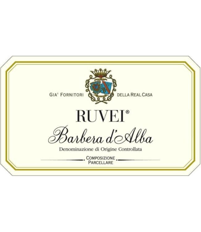 Marchesi di Barolo Barbera d'Alba Ruvei is a vivid ruby with purple nuances. The aroma is fresh, with fruity notes reminiscent of blackberry and red berries jam, and spicy scents of vanilla and roasted hazelnuts. The taste is full and enveloping, with a very slight acid note. The woody notes merge well with the other flavors.