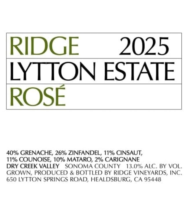 92 Owen Bargreen Sourced from this single vineyard site in Sonoma, the 2025 Ridge Rose is primarily Grenache (40%) and Zinfandel (26%). Pale in the glass, this offers honeysuckle water on the nose alongside bright red raspberry and Yakima cherry notes. The palate is fresh and clean with a superb texture and nice sense of weight. Showing excellent flinty undertones, enjoy now and over the next few years. Drink 2026-2032.